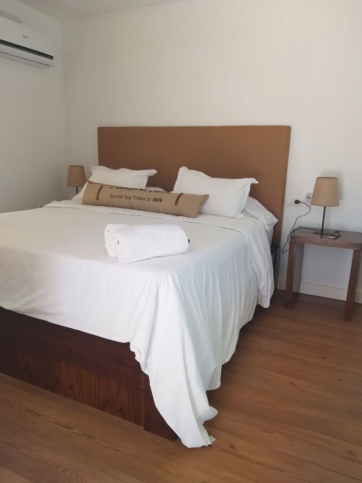 Dormitorio principal con cama matrimonial de 1,80m x 2m, aire acondicionado frio calor,