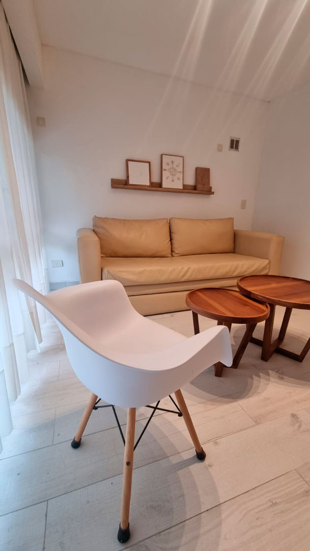 En el living un Sofá de 1,90m x 0,90m y una cama carrito, con colchón de 1,90m x 0,80m. Otro Sofá Cama de