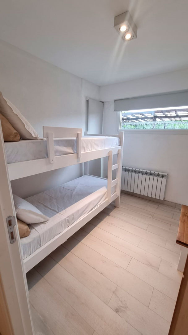 radiadores, LCD de 32 pulgadas y caja de seguridad. Segundo dormitorio con camas marineras,